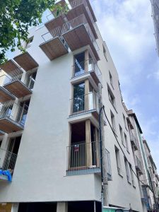 Construcción de un edificio plurifamiliar en modalidad de co-living compuesto por 8 viviendas de protección oficial y espacios compartidos, en régimen cooperativo al barrio de la Barceloneta ocupando un solar que hasta el 2007 fue un antiguo Cuartel de la Guardia Civil, construida el 1753.