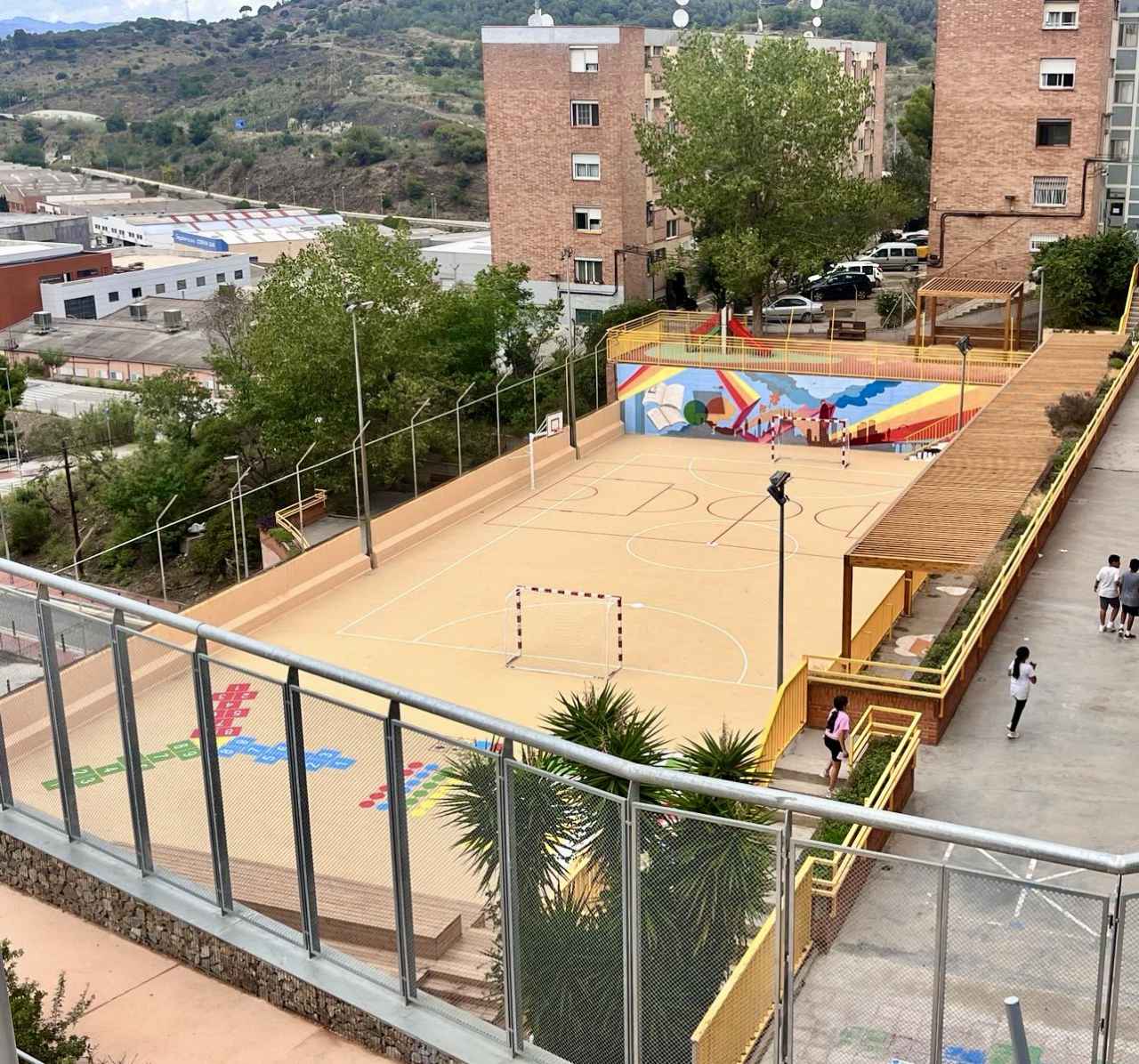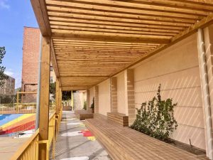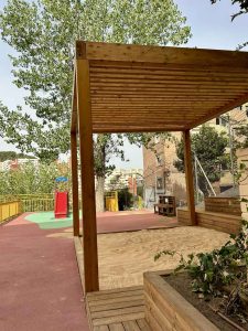 Las obras consistieron en la adecuación de sus espacios exteriores, los patios, distribuyéndolos de una manera equilibrada implantando zonas con más vegetación, superficies más blandas y puntos de agua.